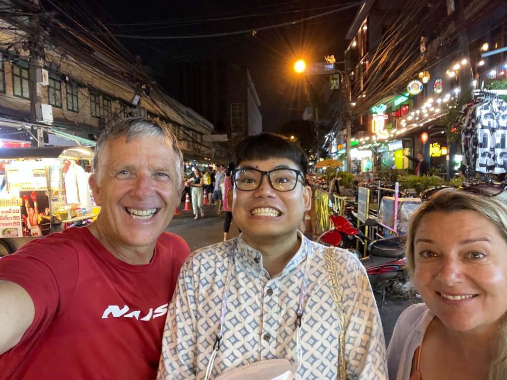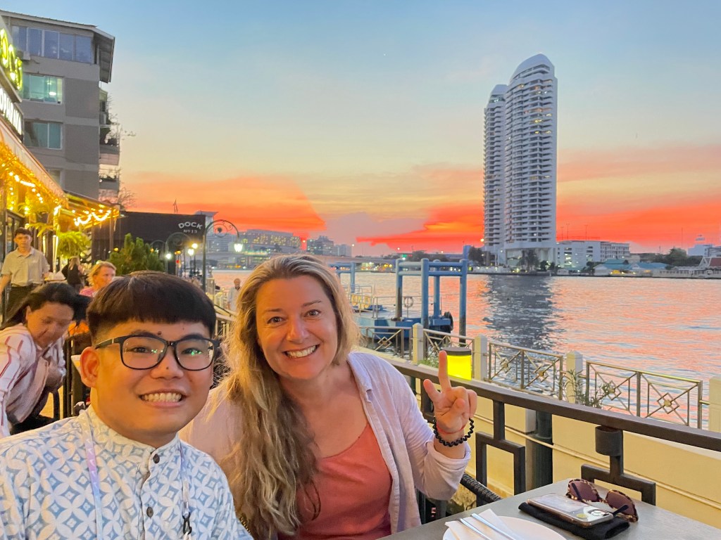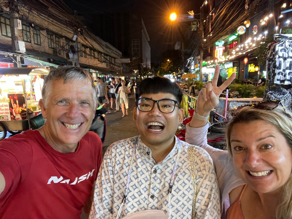 We couldn’t say his name very accurately so we called hime by his nickname Rarm (we pronounced it rom because we are hopeless Americans). He was an exchange student from here in Thailand that stayed a year with us and the kids about 18 years ago. He was a joy to have around: The sweetest kid. We tried really hard to ruin him, taking him snowboarding, climbing, wakeboarding, fire dancing, and kayaking while he was in Bend with us, but luckily it didn’t stick. He is an awesome guy. He works for the government here in Bangkok, providing English translation as he says “with my crap English”. It turns out that we ended up staying at a hotel in Bangkok and finding out that we were actually about one block from his house. When we finally were able to get in touch with him we were so happy to find out how close we landed to him. In a city of ten million people, it is still a small world.