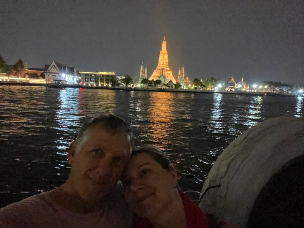 I had to add a few (more) Cheesy tourist shots. This was actually a pretty beautiful restaurant on the Chao Praya River running right through the middle of all of Bangkok. We had a great view of the main (stupa/chedi/pagoda) of Wat Arun across the river.