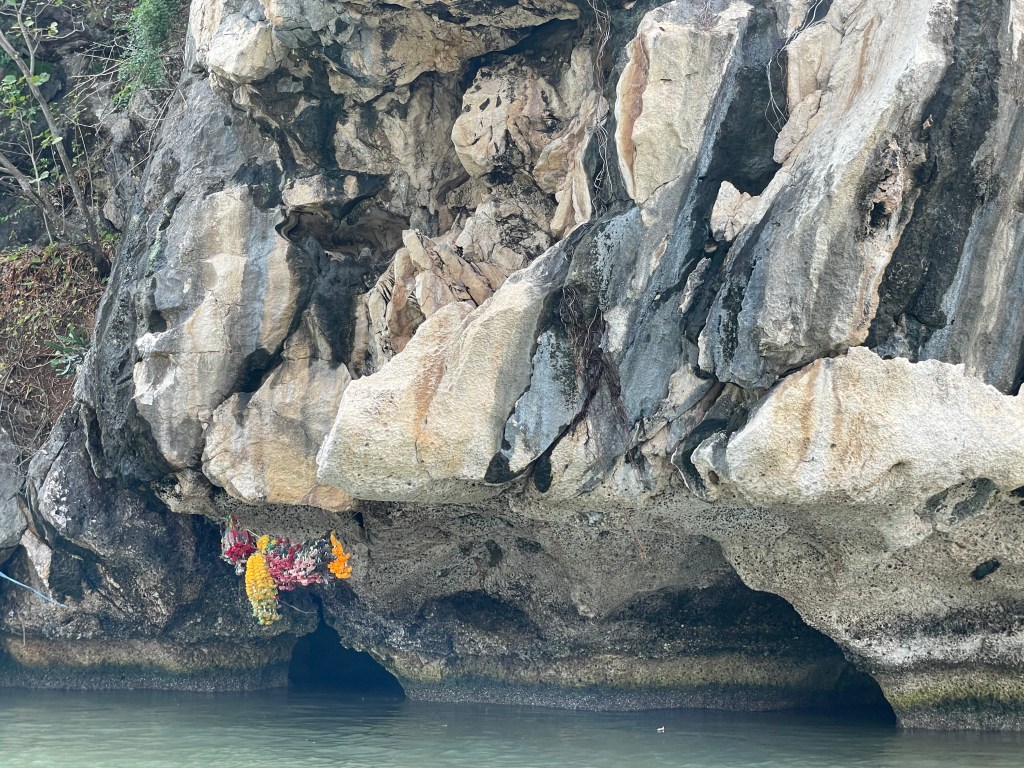 This was a natural rock formation that we saw on a boat trip in the freshwater marshes in Khao Sam Rot Yot National Park. It definitely looks like a seated Buddha, hands in lap, with a really silly smile on his face. Or, conversely, it could be a kid sitting there grinning, with his cellphone in his hand, probably posting on Facebook.