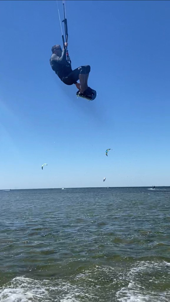 It is the lack of an internal combustion engine coughing noisy black poison into the only air we will ever get, where you can hear the hiss of the edge of your board slicing through perfect flat water, and see the clarity of the air as it can only be seen from the sea. It is the singular, constant sound of the wind in your ears, silenced only for the longest seconds of time when you jump high enough to drift with that same sound.