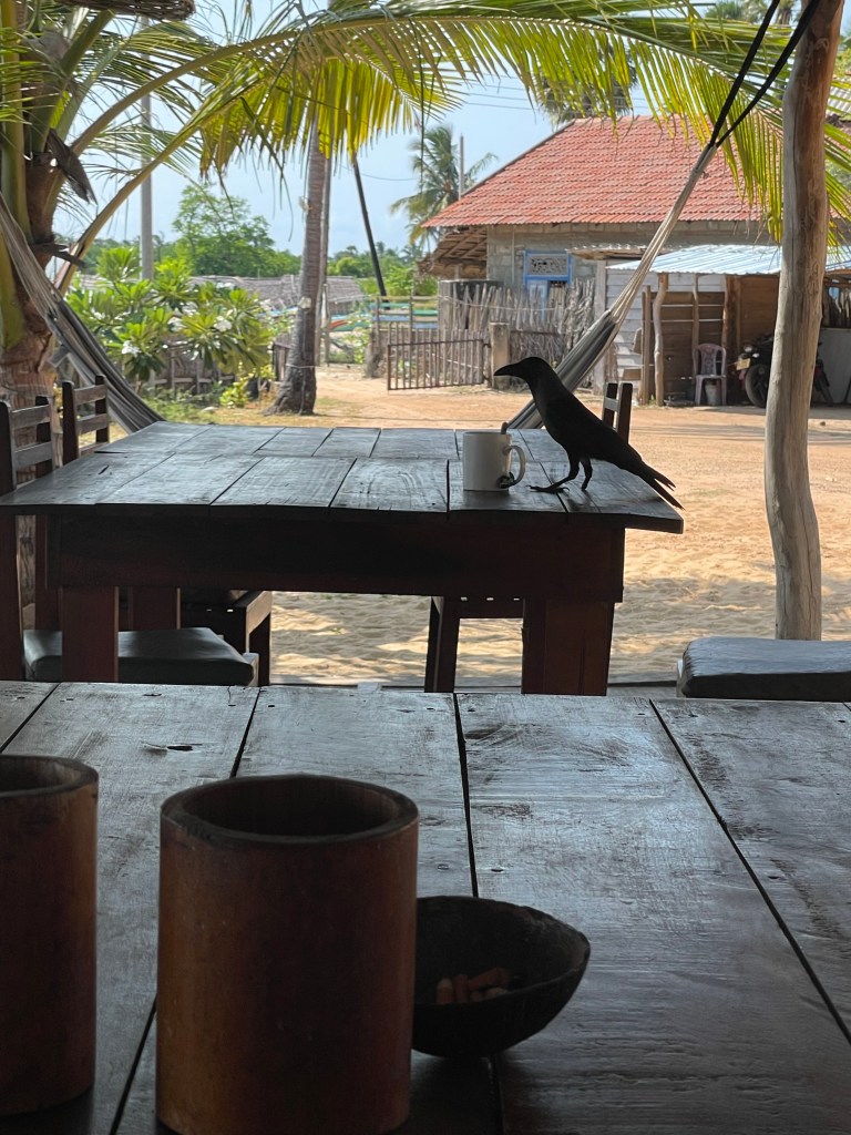 Crows everywhere. Surprisingly, these guys have outcompeted the pigeons here, and there are no pigeons to be found anywhere. They are brownish in color, and smaller overall, with much bigger beaks. The Sri Lankan (Sinhala) name for them is a Ca Ca, so the silly birds are constantly referring to themselves in the first person.