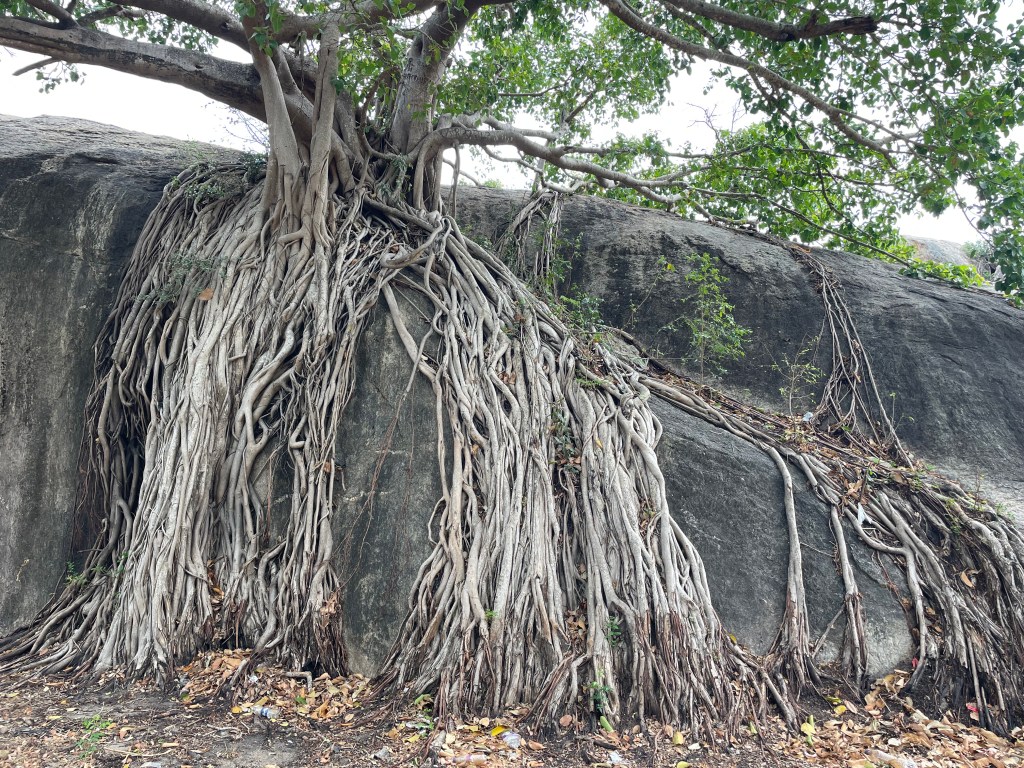 We set out to check the surf at a spot about an hour South of our house, with the added incentive of seeing a Hindu temple on a granite dome and a Buddhist temple on a different granite dome about a mile further on. All of this sightseeing is centered around the town (teeny tiny village) of Okanda, in the Ampara district of Southeast Sri Lanka. This is all situated on the very border of Kumana National Park, which is only accessed by safari jeep tours, so we could only explore the boundaries outside of the park. It was pretty spectacular, though.