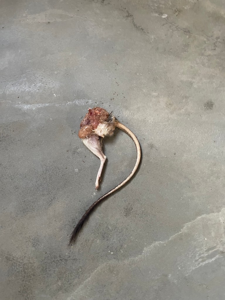 Several nights I got out of bed and stepped on her not-so-little presents. Yuck.