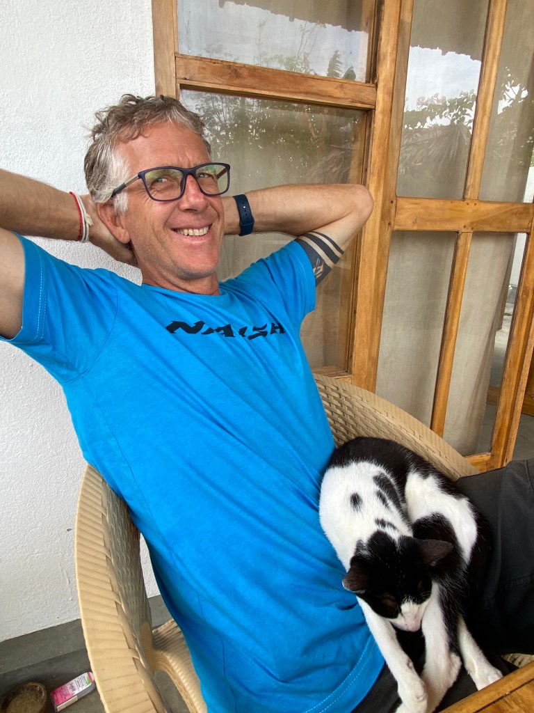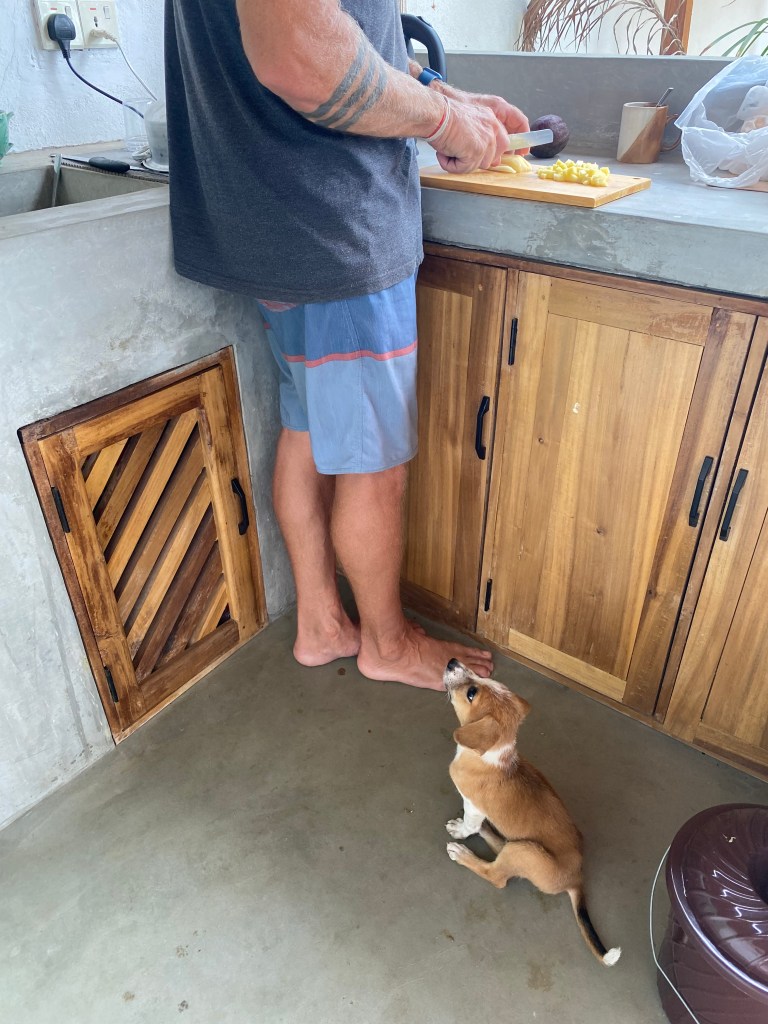 This little bugger had near met his maker when we arrived, sick with Parvo virus and barely able to move. Thanks to Anne’s care, he recovered with a vengeance, becoming a dervish of teeth and mischief as he started feeling better.