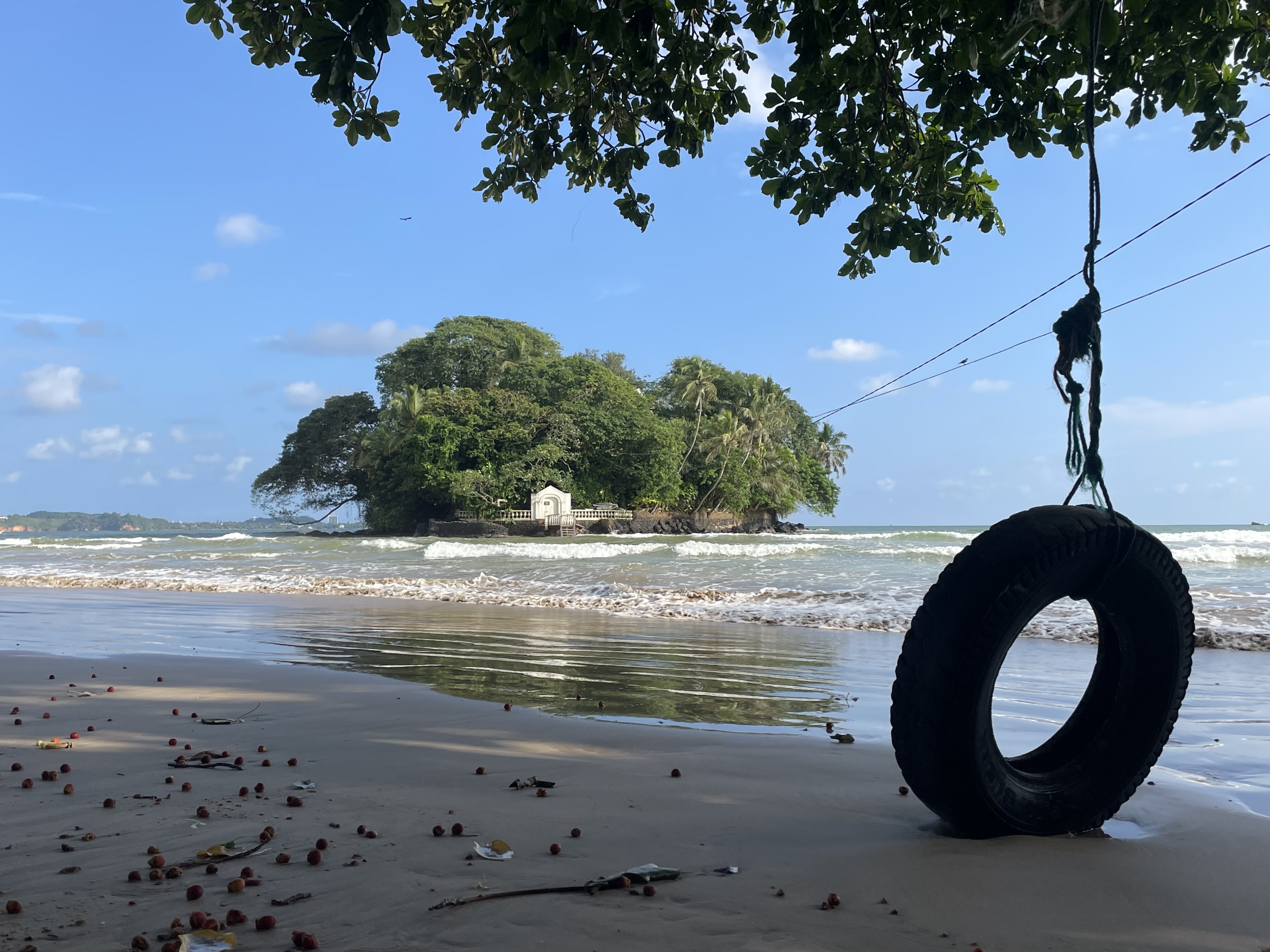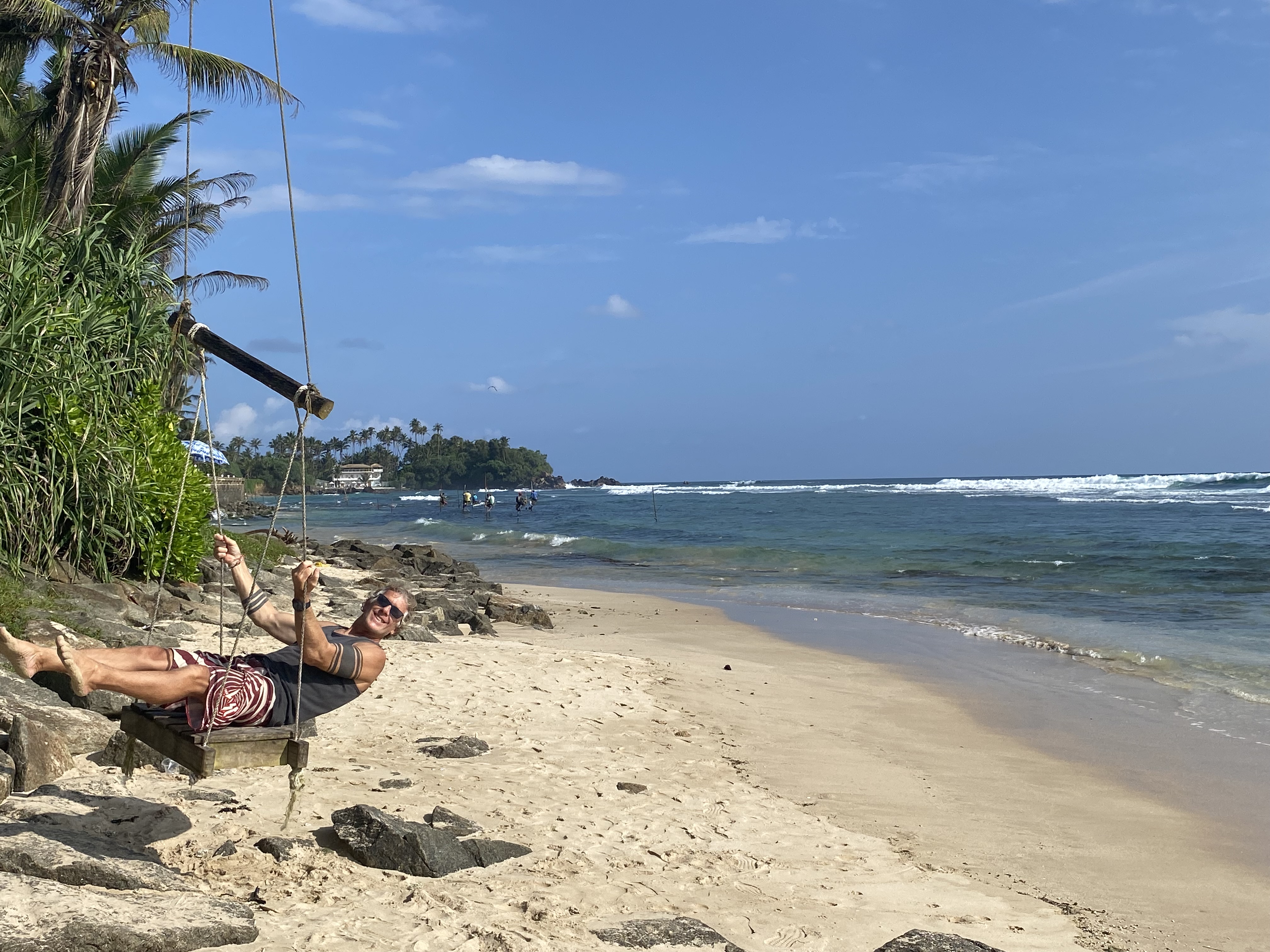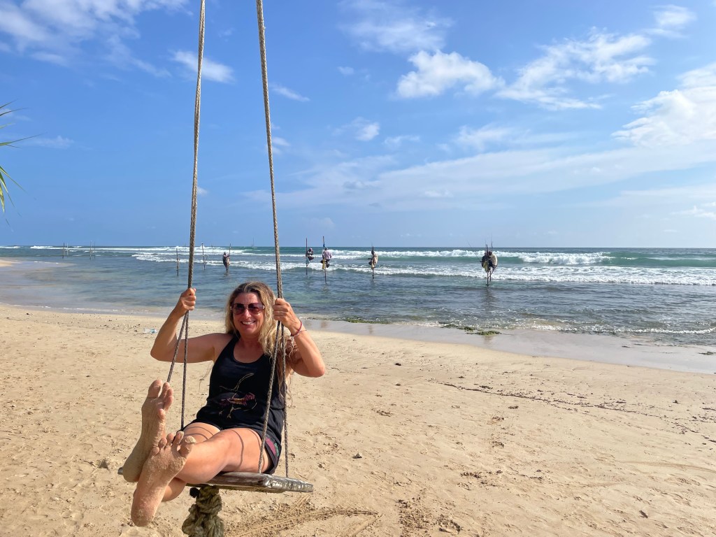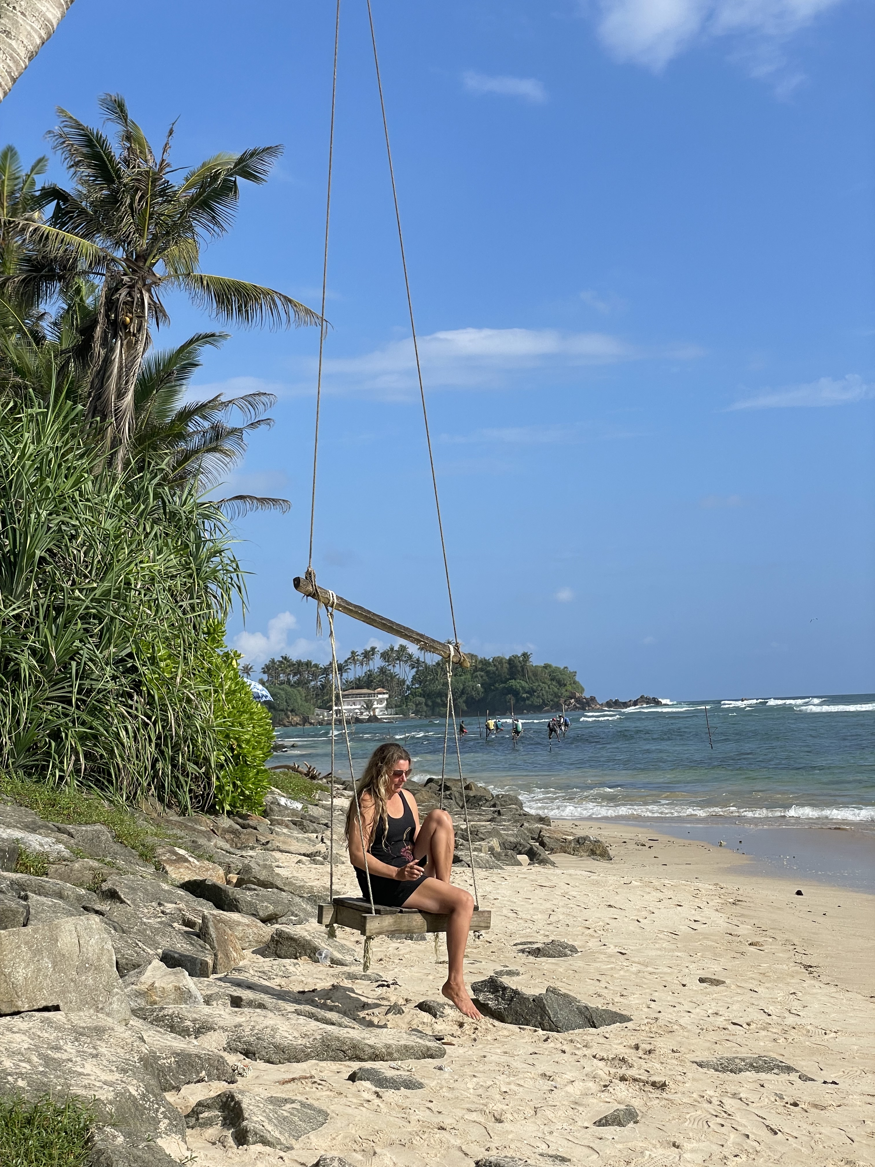Of course we had to get on the swings. There are so many beaches we have visited with the classic “coconut palm leaning out over the beach with a swing hanging from it” all over the world. I think we have pictures of them all.