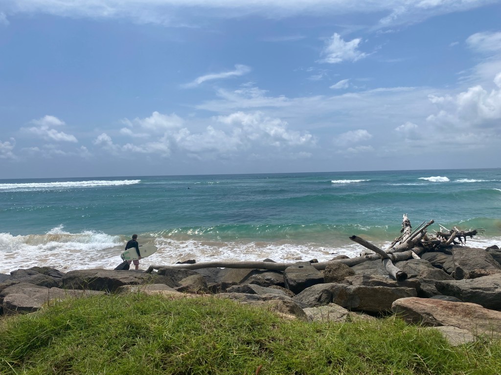 We paddled out to try a new break that Tam has been wanting to try called Marshmellows (yes, its supposed to be spelled that way. Mellow…?). On some days the surf around the South coast can be a little overwhelming for her. It can be a bit heavy, with some long paddle-outs through a lot of sets. Today, though, she was happily surprised by the surf, and I was happily impressed by how well she surfed and how much fun she had. It wasn’t really that small, but she did really well, and took off on a bunch of good ones with long rides down the line. It was nice to see her so relaxed and in her happy flowy spot today, just enjoying herself in the water. And the water was perfect: crystal clear, and the temperature warm enough that every cell in our bodies was at ease. It felt like we could float around out there all day (and we nearly did, except for the need for food).