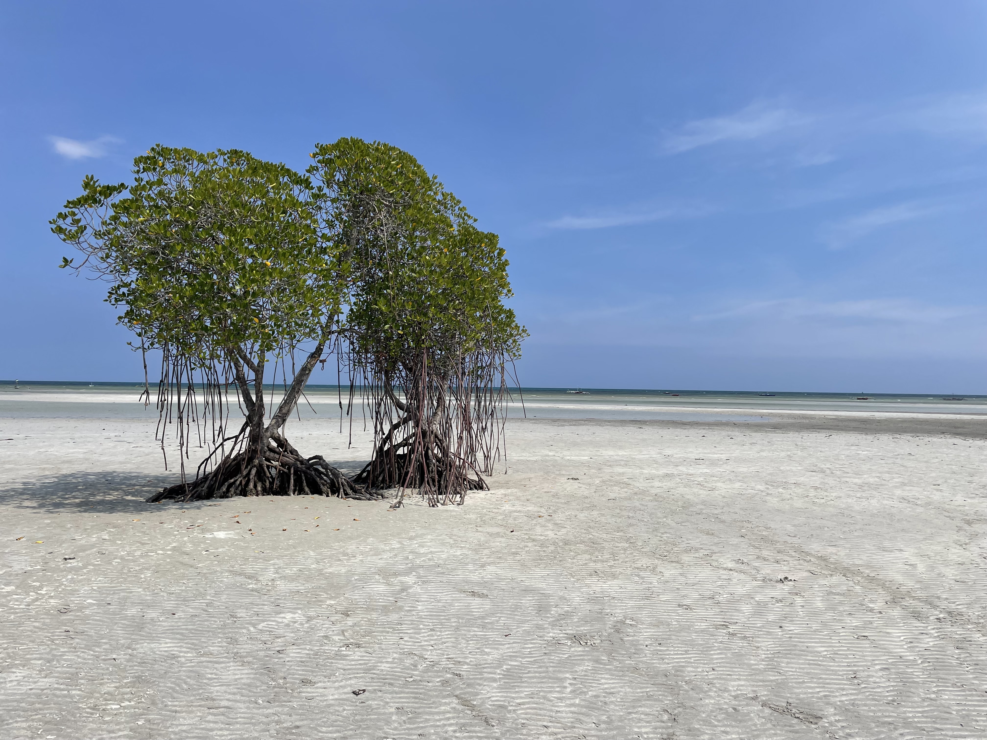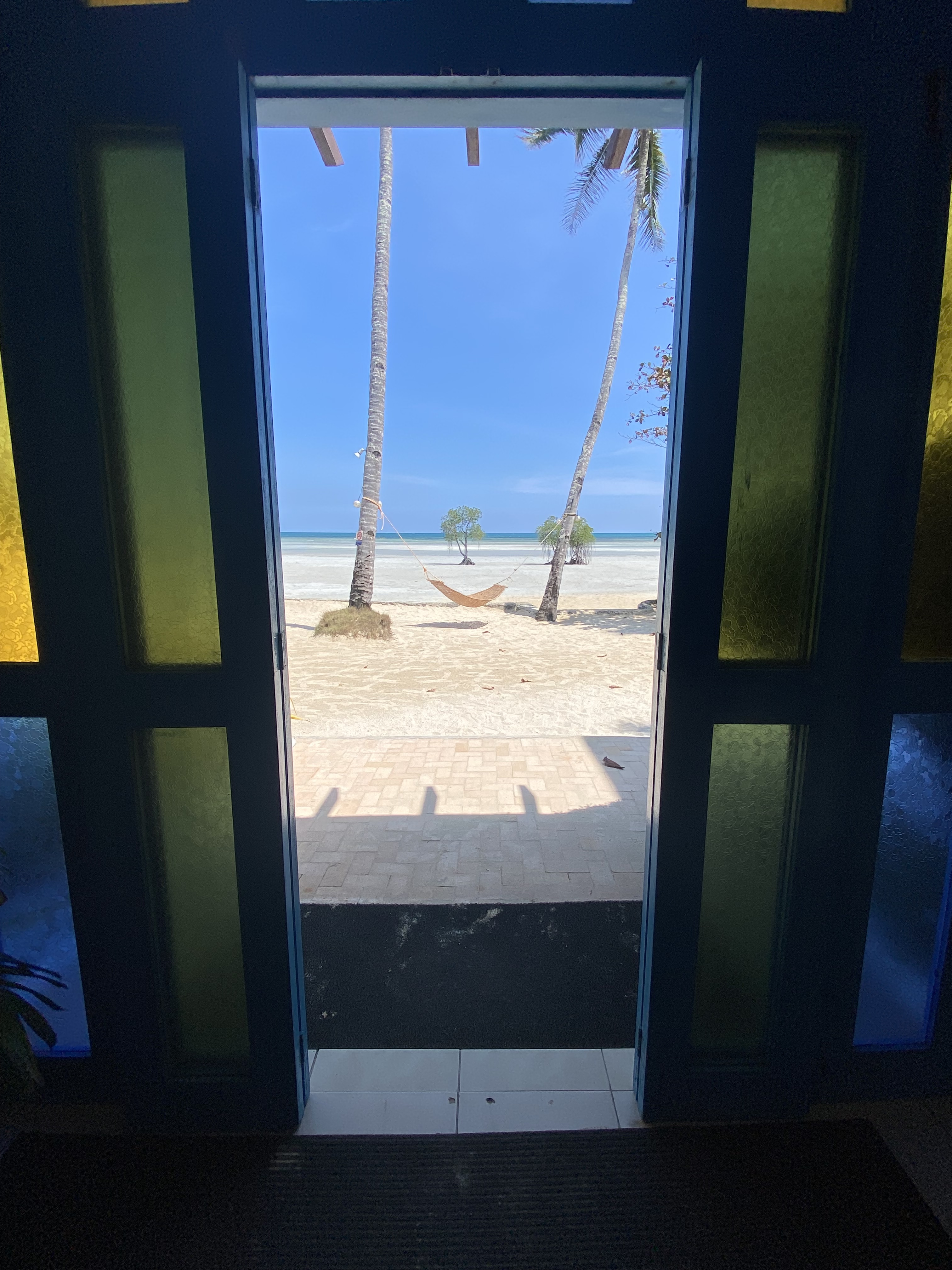 The view from the front door, and the beach at low tide. Puerto Princesa.