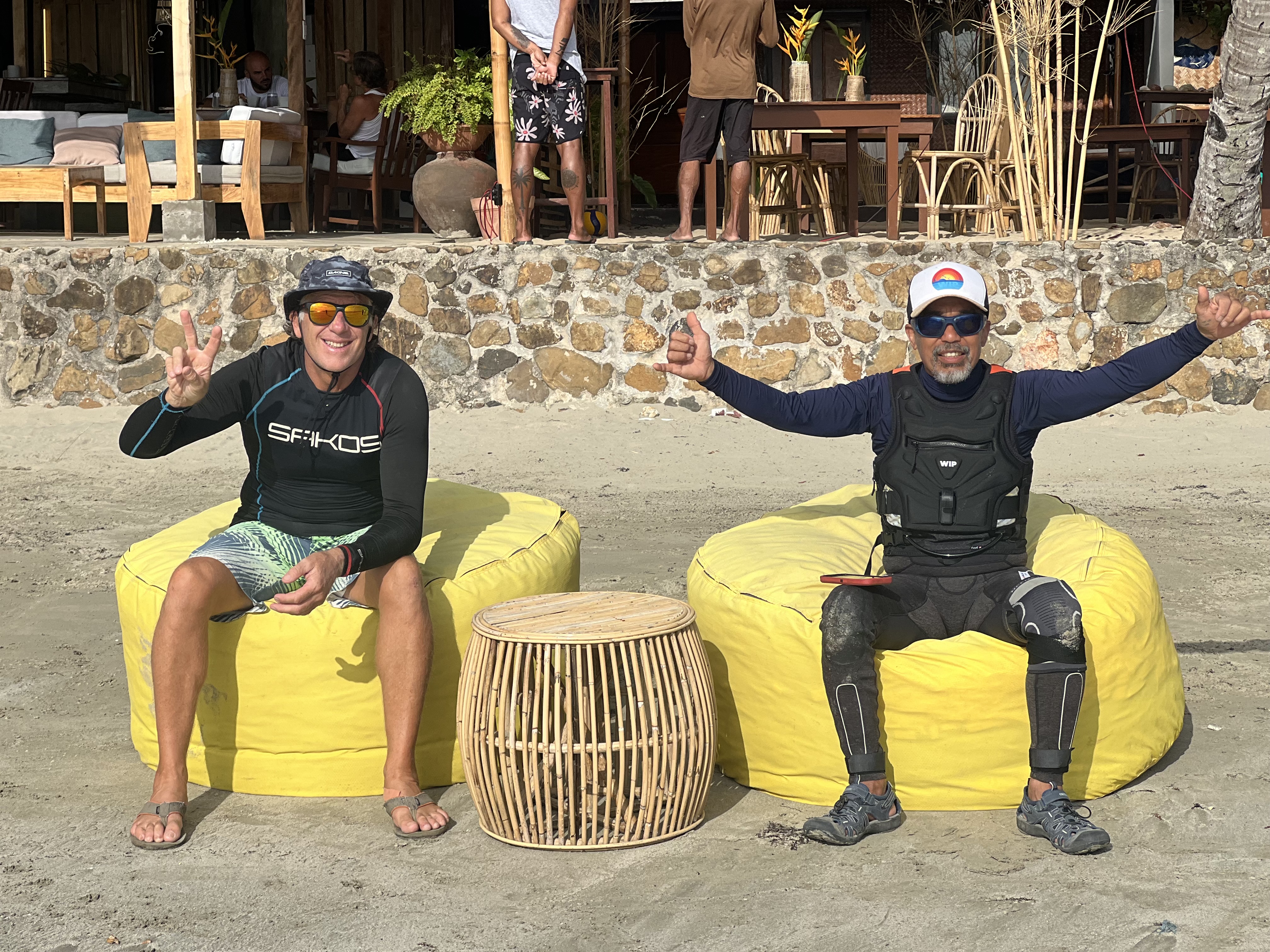 Some quiet, peaceful contemplation and hours and hours of great kite sessions here at Kitesurfing Mindoro on Bislig Beach. It is wonderfully remote (a huge blessing after the crowds of Boracay), with great food and perfect, uncrowded kite conditions. The water is flat and the wind blows all day. We will have more about this place later: Tam and I will be coming back here for two weeks after everyone else heads home and we are on our own again.