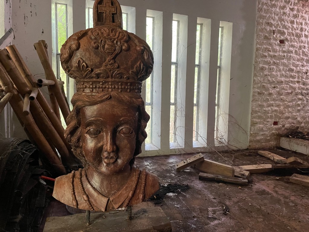 We found Mary laying around in the jungle next to the altar. It seems the typhoon was a bit rough on her. She wasn’t in the best shape.