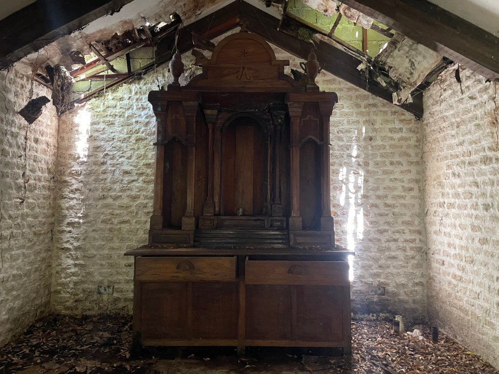 It was actually pretty cool. It had been destroyed by a typhoon (I am not sure when), but some of it remained intact, if just slightly overgrown.