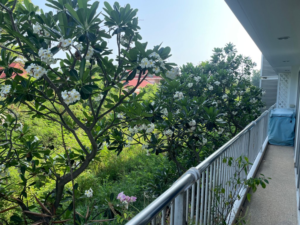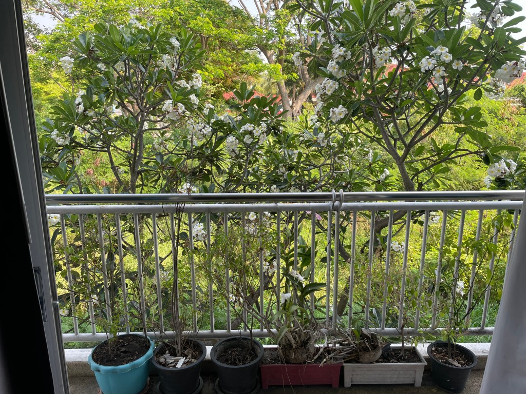 It feels quite cozy and private, in spite of the fact that we are in a condo building, as we are surrounded by lovely and fragrant frangipani trees. It smells absolutely fantastic in the mornings.