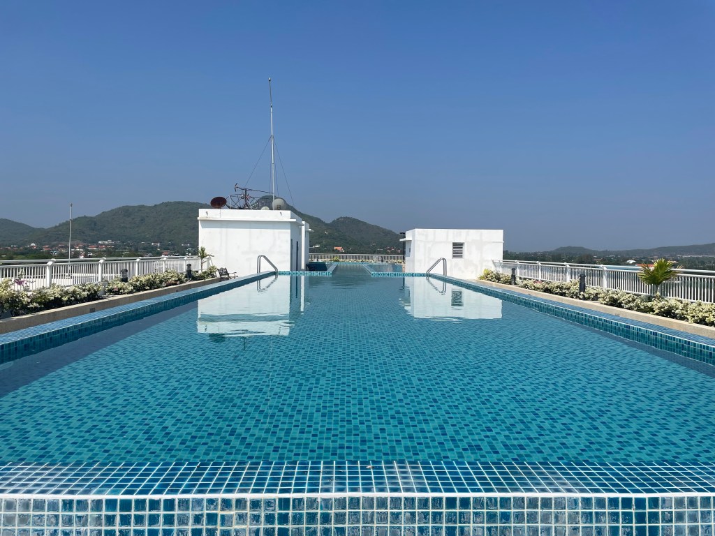 This is the rooftop pool on the front building from where we can watch the sun set to the west, and see the rooftop gardens and the beach to the east. We enjoy this one in the evenings for a chat.