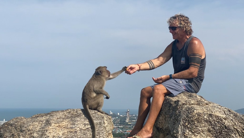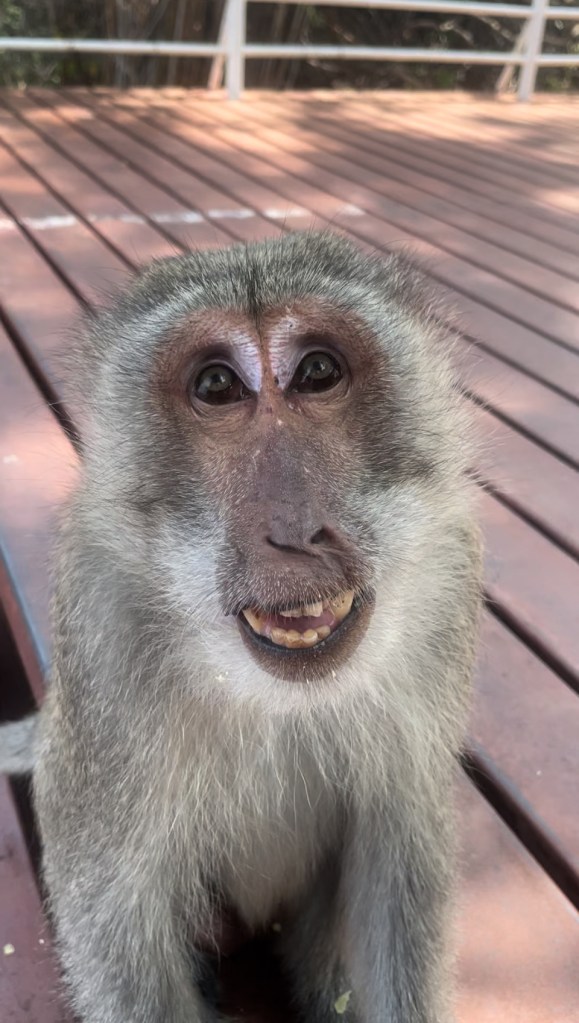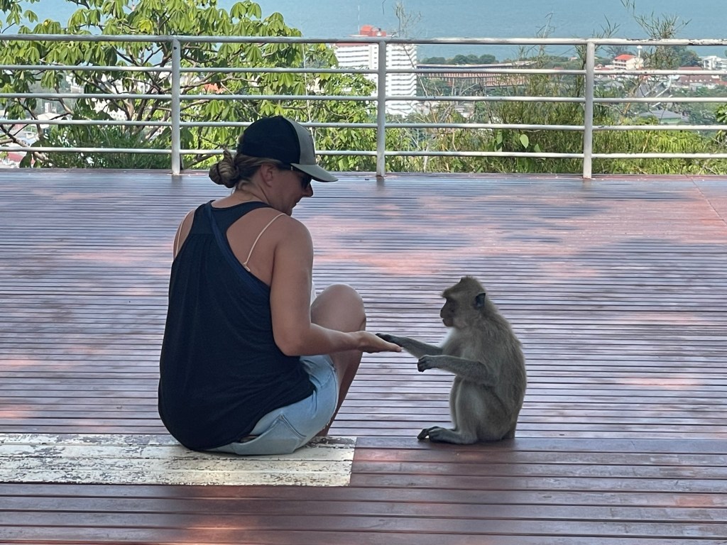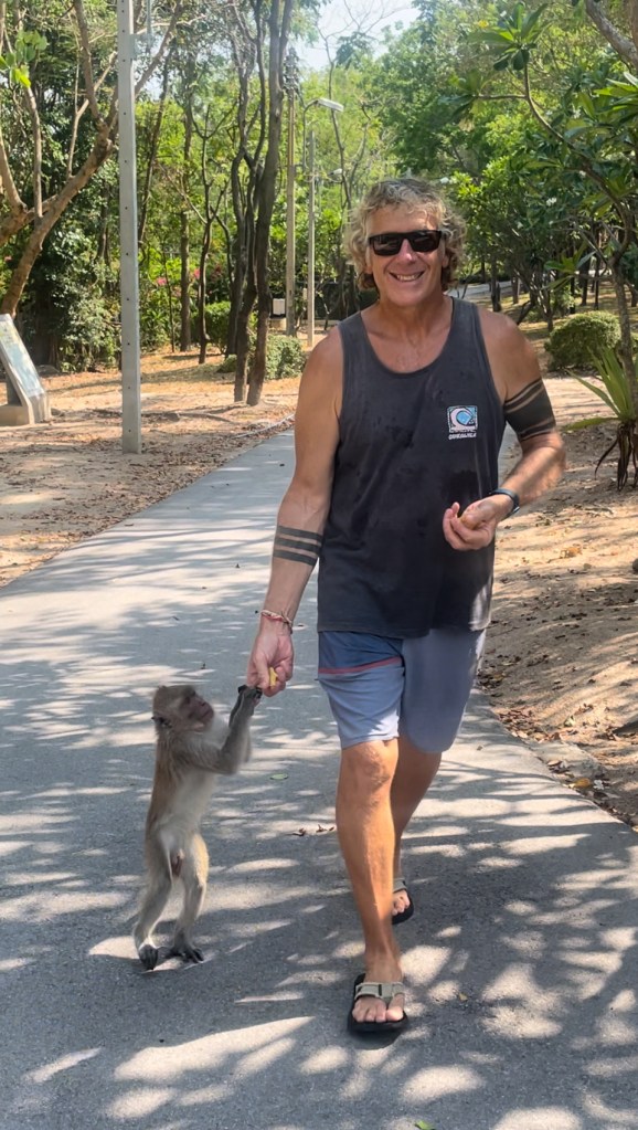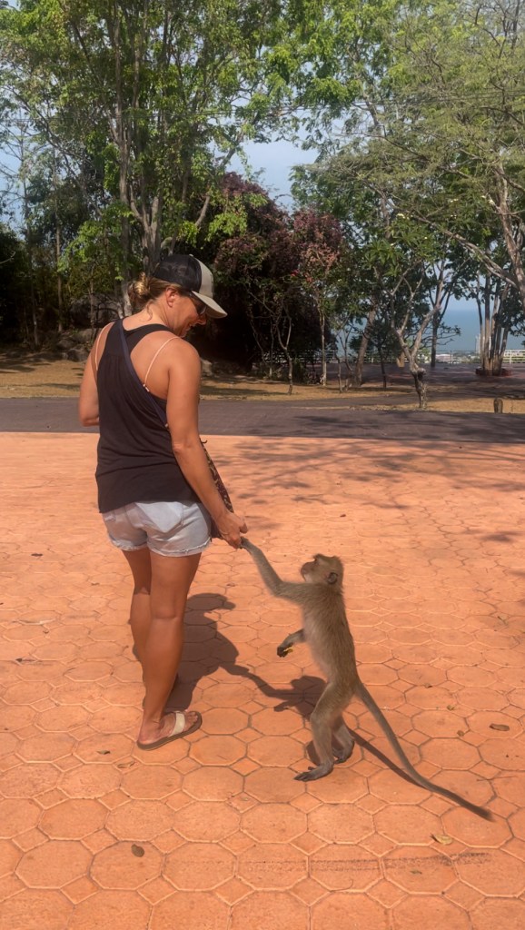 Last year I wrote a post called “Monkeying Around”, about some of the monkeys living around us here in Hua Hin. We have been back several times to Wat Takiap (or Monkey Mountain as it is more commonly known) to visit the temple there, even as it is protected by a pack of perverted little long-tailed macaques. Our friend Milo even had an ice cream cone stolen by one, and nearly lost his second ice cream to a surprise monkey ninja attack.
