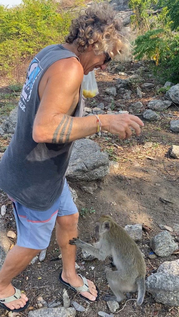 Like last year, we bought a bag of tortilla chips from the little old lady that oversees the park (and uses her slingshot liberally to keep the monkeys from destroying your motorbike while you are wandering around), and went to explore the park and make some new friends.