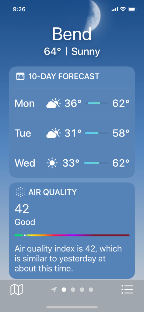 Well, shit. This is the forecast for the first three days we are back in Bend.