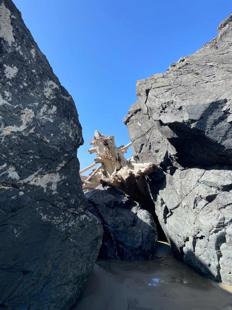 Or these crazy pieces of driftwood that find their way into the rocks.