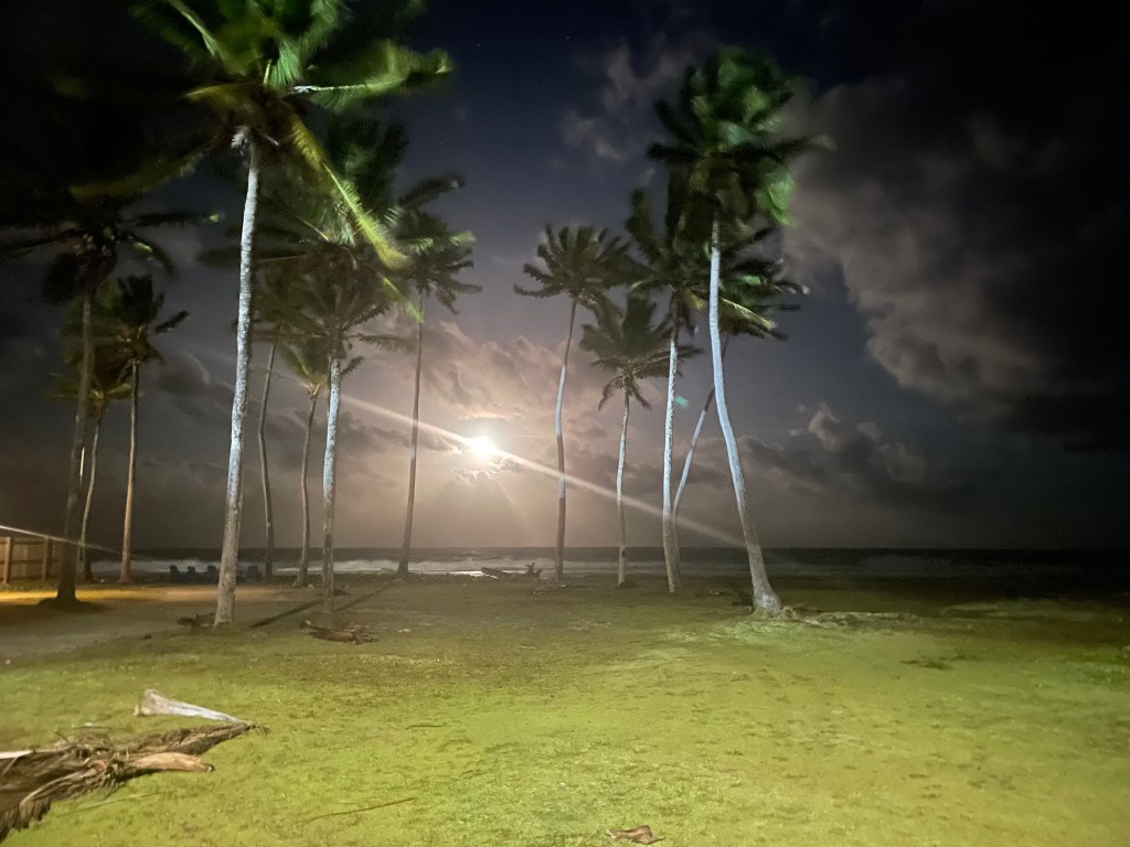 A lot of our days end up with a great sunset on the beach, and a few of them with a great moonrise from another beach.