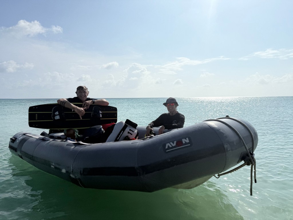 We take our trusty old Patches out to the causeway between Ebye and Lojjairok (Little Shell) islands for kiteboarding on days off. He is a good old boat and waits around patiently for us to finish up. We always need to deflate the tubes when he is sitting out in the sun, or he will explode. Then we have to re-inflate him before we leave. It is completely worth it. He was made in 1998 (the year Tam and I met), and may not be quite as structurally sound as he was originally (kind of like me), but with a little TLC and some on-the-fly pumping up, he keeps us afloat.