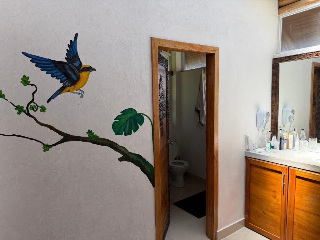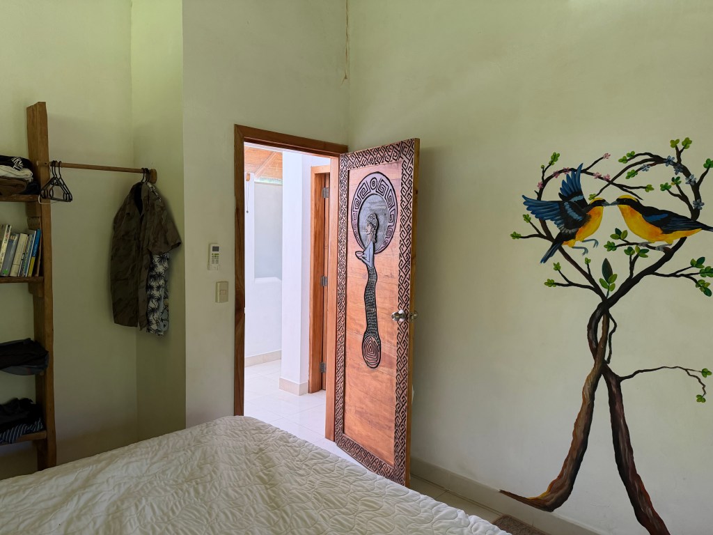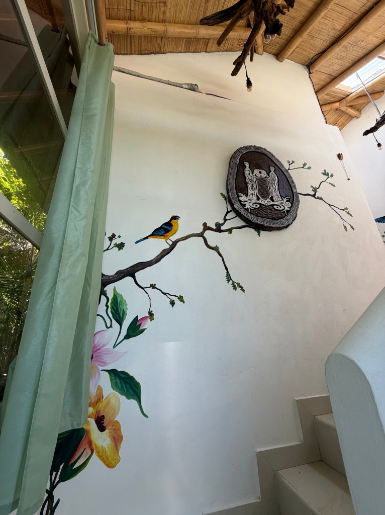 Its a comfortable, airy, little house with tons of natural light, beautiful carved hardwood doors, and some funky hippy-ass art painted on the walls